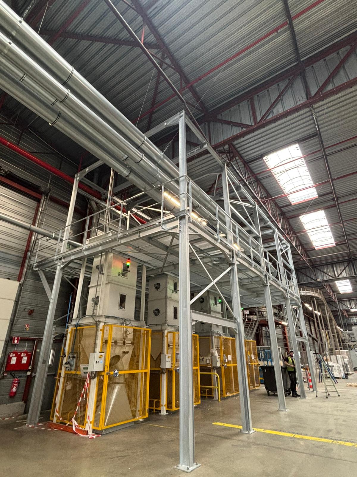EMECAM a ainsi pu pour concevoir, fabriquer et installer une plateforme industrielle dédiée à l’accès machines et à la maintenance dans un site de production de produits d’hygiène.